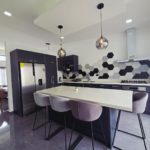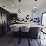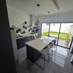 • Mueble de cocina en melamina hidrófuga con sobres de cuarzo