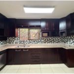 - Cocina con amplio mueble para almacenamiento en madera